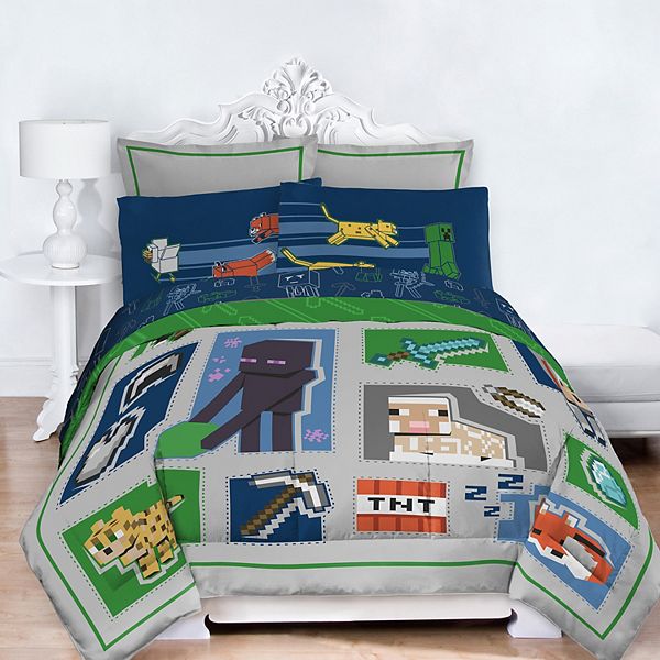 Kids Minecraft Creeper 5 Piece Twin Bed Set Includes Reversible Comforter Sheet Set. Skeletons creepers and the ender dragon join their bedtime adventures on this Minecraft-inspired sheet set. Did you scroll all this way to get facts about minecraft bedding.