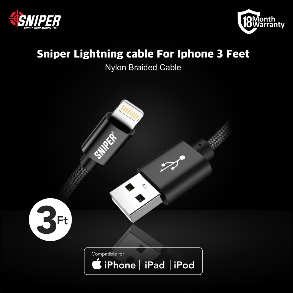 Sniper Cable Nylon Braided Lightning 3ft 0 9m Black Shopee Indonesia