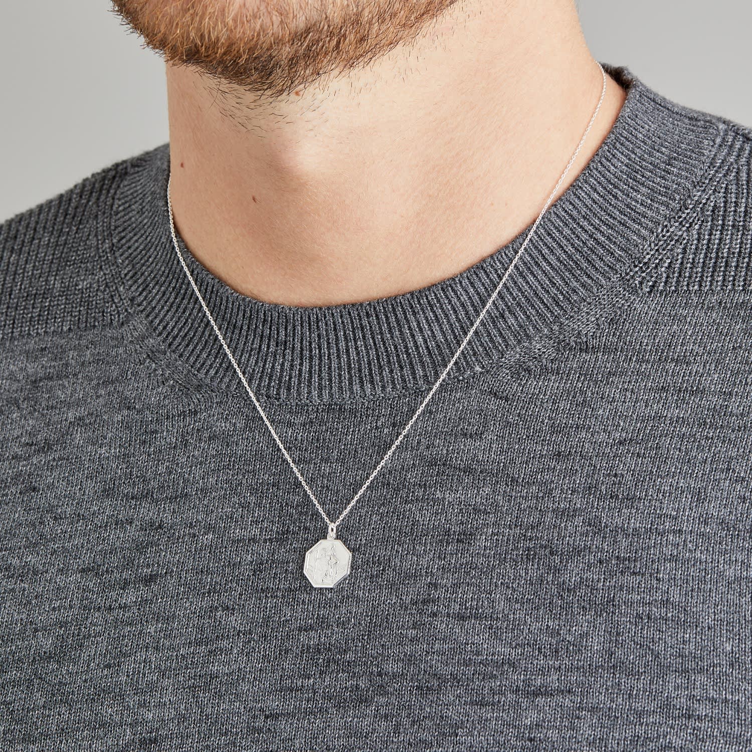 Men S Medium Solid Gold Octagon St Christopher Necklace Lily Roo Wolf Badger