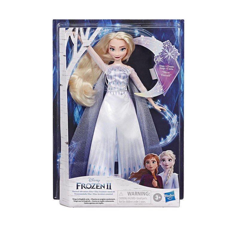 Magic in the details Elsa singing doll Satin costume with glittering underskirt and shimmering organza cape Styled braided hair Molded boots Fully poseable Twirl Elsas wrist to hear her sing Into the Unknown Character voice in English Inspired by Disneys Frozen 2 2019 Part of the Disney Singing Doll Collection The bare necessities Ages 3. Disney Frozen 2 Magic in Motion Singing Elsa Doll. Sing along with Elsa like never before with Disneys Frozen 2 Magic in Motion Elsa Doll.
