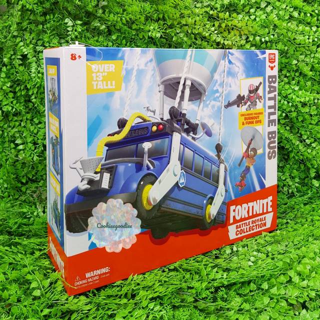 1 video game in the world the Battle Bus is the most important vehicle in the game and the centerpiece of Moose Toys Fortnite Battle Royale Collection for. Includes exclusive Burnout and Funk Ops figures and Victory Umbrella. See the flame light up ready for take off and open the doors to start your campaign.